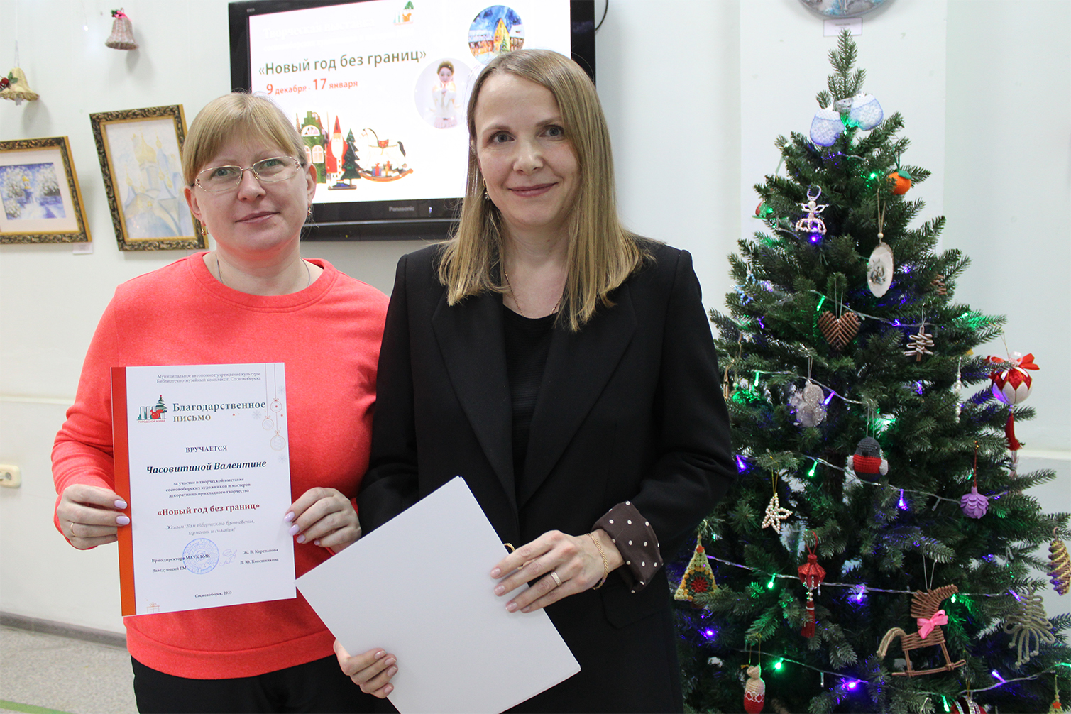 Творческая выставка сосновоборских художников и мастеров декоративно-прикладного искусства посвящена одному из главных праздников – Новому году! Более 40 сосновоборских авторов разных возрастов и профессий, представили свои работы в различных техниках - от классического вязания крючком до полимерной глины и эпоксидной смолы. Но объединяет их всех одно - все эти предметы несут в себе часть того волшебства, той магии, которая сопровождает всеми любимый праздник - Новый год! Гости мероприятия узнали об особенностях, символах и традициях празднования Нового года как в России, так и разных странах. Познакомились с традициями, связанными с новогодним деревом, детально разглядев игрушки на ёлке. Обратились к традиционному новогоднему меню и классическим атрибутам праздника. Заведующий Городским музеем поблагодарила мастеров лично, вручив благодарственные письма за участие в выставке.